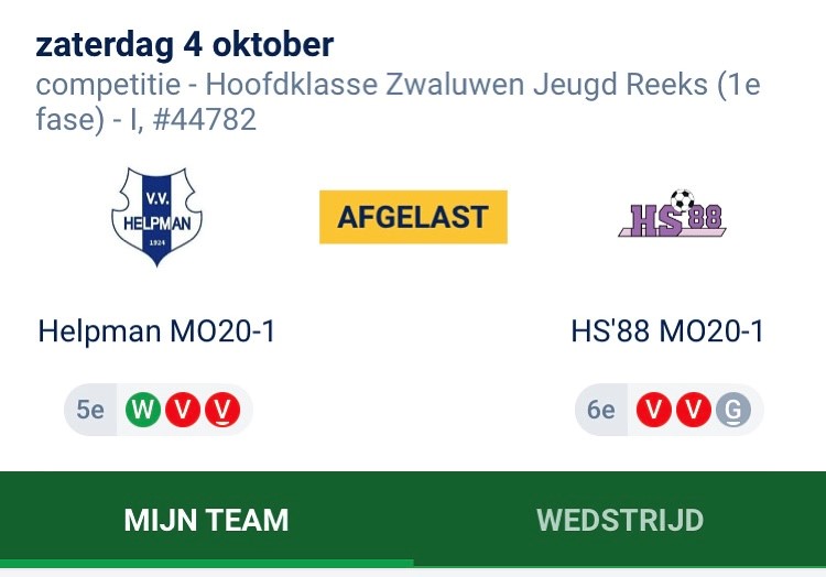 Wedstrijd Helpman MO20-1 – HS’88 MO20-1 afgelast