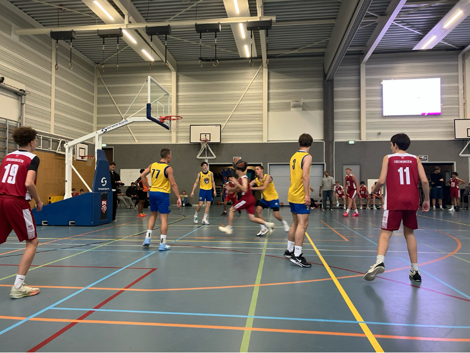 Ik heb een hele leuke en spannende wedstrijd gezien! Donar wint uiteindelijk de eerste derby van het noorden van dit seizoen. Later in het seizoen wordt deze derby nog een keer gespeeld, maar dan in Sporthal Vinkhuizen. Dat is de thuishaven van Donar M16-1.