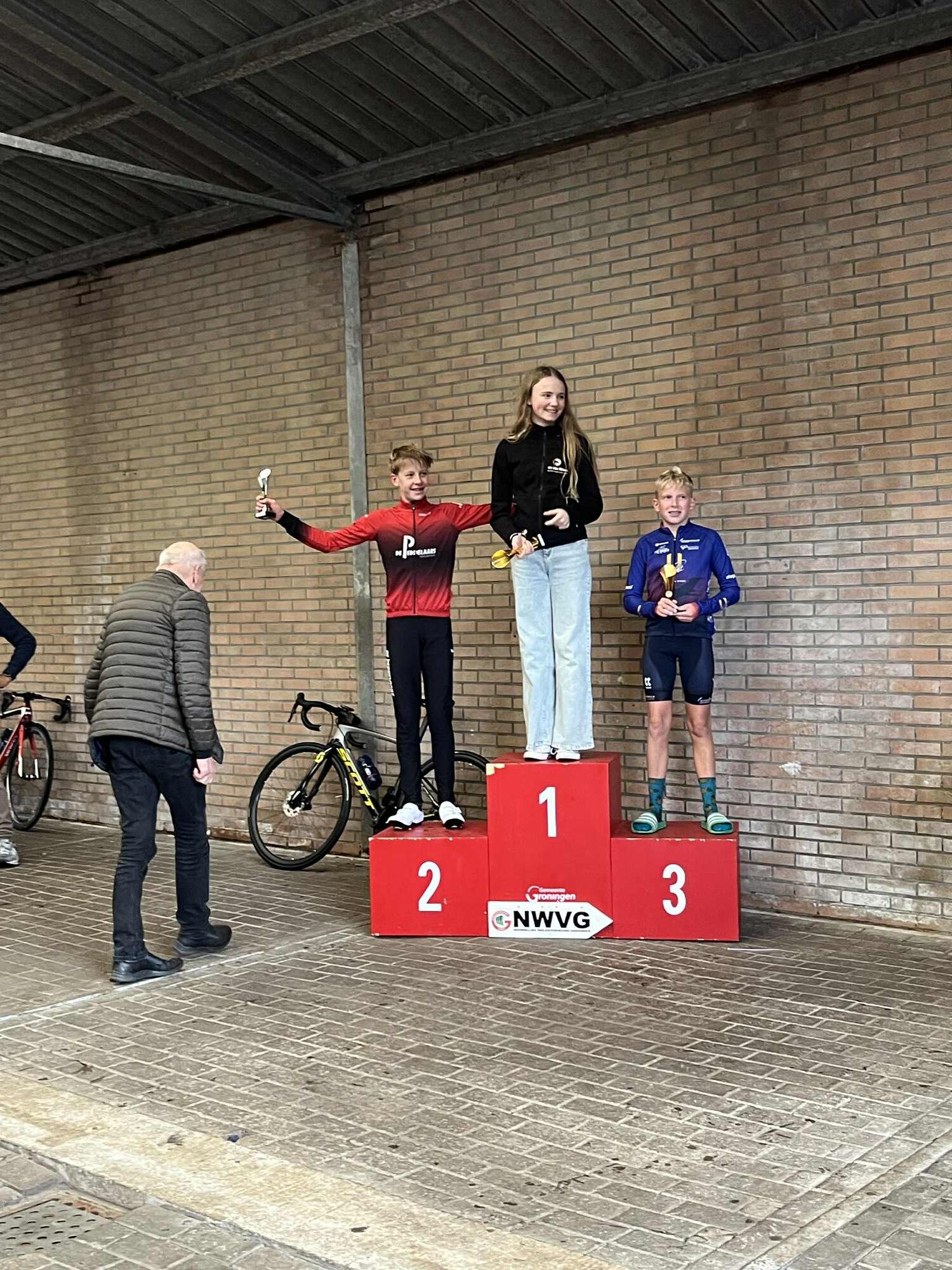 Een eerste plaats in categorie 7 en algemeen winnaar van het hele peloton met de nieuwelingen en junioren dames.